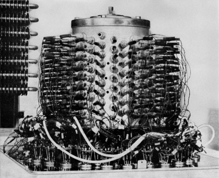 Der Magnettrommelspeicher der PERM. Die spiralförmig um